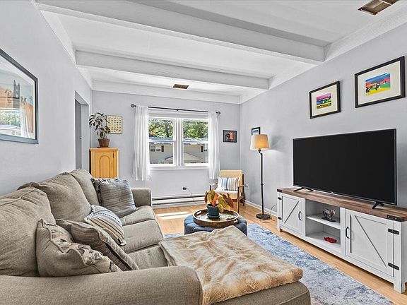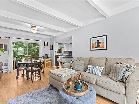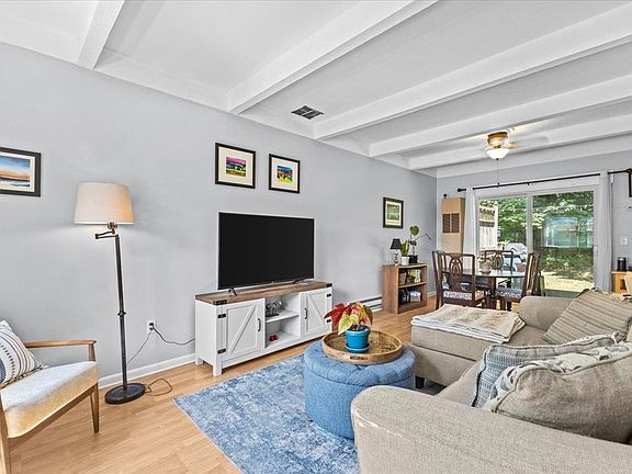 Move right into this bright and modernized two-bedroom, one-bathroom, 960 square foot condo in the peaceful Royal Park community in Essex! This unit’s kitchen has been thoroughly updated, including a breakfast bar, which is rare in these homes. The living and dining room is spacious and has high ceilings with exposed beams, along with newer flooring throughout. A first-floor mudroom for storage, laundry area, large pantry, and private outside deck/patio with a shed for storage complete the first floor. Upstairs, find two bedrooms both with newer flooring. The spacious primary bedroom has two large closets, along with a large linen closet in the hall. A second bedroom and updated full bathroom complete the second floor. This property features efficient natural gas heat with back-up electric heating. All updates have been made for the next owner to come in and enjoy easy living in Essex, close to 5 Corners, Pearl Street, and the Essex Experience for dining and entertainment. Two assigned parking spaces per unit and one pet per unit.