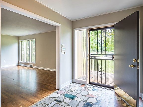 Mid-century modern beauty on quiet street. Built in 1961, this sleek design retains its original character & HDWD floors. 4 large BR 2-1/2 BA-huge Primary BR. Spacious LR & DR, plus a large den w/wood burning FP. Open kitchen w/eat-in breakfast area, a buffet counter & cabinets galore. Back deck connects to both den & primary BR overlooking wood fenced backyard. Full basement w/large finished bonus room w/private entrance. Oversized double garage. Professionally landscaped w/irrigation system.