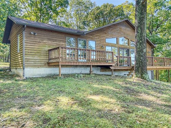 It's tough to capture in pictures how amazing this house and 26.5 lake front acres are. Over 2000' of Corps-line frontage with about half of that being in the water, house size boulders, three story cliffs, gated privacy with no other houses in sight, 180 degree lake views, amazing sunsets, and tons of room for trails and exploring! The house is clean and well maintained with large windows throughout. Nice homes in the area, paved road access, and the home is only a little over a mile from Starkey Marina!