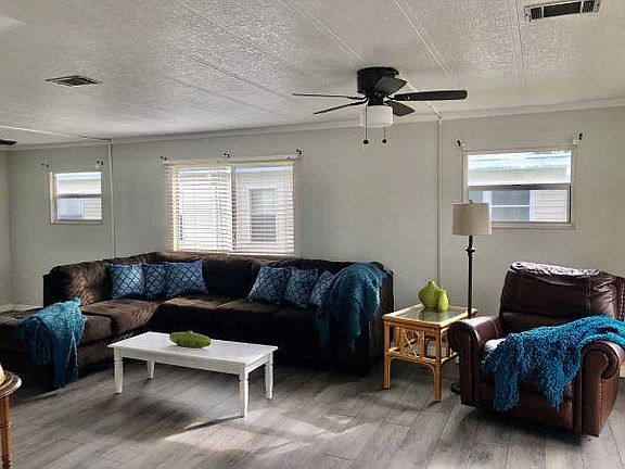 You don't want to miss this large home located on a corner lot in the wonderful resort community. Just down the street from one of the five clubhouses/pools. Home has been updated with...New subfloors (3/4 inch plywood) through most of the home and new laminate flooring throughout entire home. Brand new Nest thermostat. Light and bright kitchen with new stainless steel appliances all under warranty from Best Buy. Home will be partially furnished including new mattress and box springs in guest bedroom. Interior newly painted. Master bedroom has 2 large closets. The walk in closet is the size of a small room with an outside access door that could be used as another room. Large side lanai with beautiful tile flooring. This park is in a great location near interstates for easy commutes. Community has access to the Manatee River including a marina. Pet friendly park that allows up to 2 larger dogs. All listing information is deemed reliable but not guaranteed and should be independently verified through personal inspection by appropriate professionals. Integrity Mobile Home Sales cannot guarantee or warrant the accuracy of this information, measurements or condition of any property. Measurements are approximate. Lot rent is subject to change.