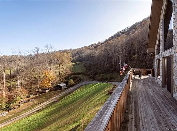 This home, which was featured on HGTV's Mountain Life, is a piece of heaven on three private, beautifully rolling acres. Located a stone throw's from Pigeon River and conveniently between Asheville and Waynesville. Enjoy mountain and pastoral views via floor-to-ceiling windows in this custom home's great room. Cuddle up in front of the stone fireplace and entertain on the spacious front and back decks. Hardwood floors throughout, spacious kitchen with tons of workspace and cabinetry, master suite with ensuite bath, his/her closets, soaking tub and walk-in shower. Attached two-car garage. Entire lower level (~1,700 sf) ready to be finished for additional living space.