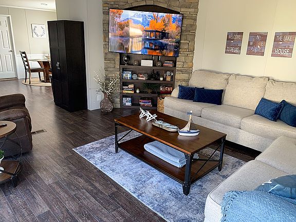 Get yourself a lake house!! At LOGAN MARTIN LAKEyou can enjoy a 2015 Southern manufactured home, 4bed/2bath, FULLY FURNISHED, with tons of upgrades!! NEW ROOF, NEW refrigerator, NEW washer, NEW toilets, freshly painted accent walls, NEW dark solar screens on porch, NEW white vinyl skirting, New wood skirting around porch and walkway, freshly stained all wood skirting, porches and decks. NEW giant ceiling fan on porch…..and on and on and on!!! This home has been cleaned and freshened up from one end to the other! Your family & friends will LOVE coming to the lake!!! Lot lease is $325/month which includes water and septic tank. Optional boat storage behind the home for an additional $65/month! Great place, peaceful, awesome water and sunset views from porch. YOU WILL LOVE LIVING ON THE LAKE!!! You have the option of using this place full time or come as often as you want!!! Owner is a licensed Alabama real estate agent. No owner finance, not for rent or lease. Shown by appointment only. Buyer agent friendly!