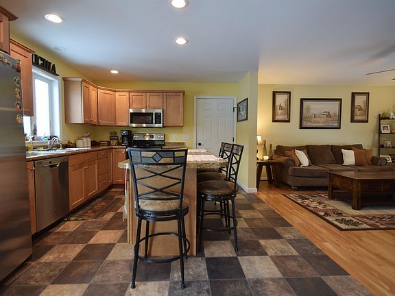 Welcome to this charming 3-bedroom, 2-bath cape set on 1.07 peaceful acres. The first floor offers an inviting open layout, beginning with a bright kitchen featuring an island and stainless-steel appliances. Just beyond, the dining room opens through a sliding glass door to the backyard, creating an easy flow for indoor-outdoor living. The spacious living room is warm and welcoming, highlighted by beautiful hardwood floors. Conveniently located on the main level, the primary bedroom includes its own ¾ bath for added comfort and privacy. Upstairs, you’ll find two additional bedrooms and a full bath, offering plenty of space for family, guests, or a home office. Step outside to enjoy everything this property has to offer — a large deck with an above-ground pool, a storage shed, play set, horseshoe pits, and dedicated garden spaces. With a stunning natural backdrop and frequent wildlife sightings, the yard is truly a place to unwind and recharge. Come and see what this beautiful home has to offer!