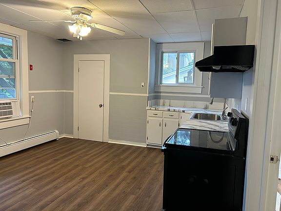 Spacious 3 bedroom apartment. FIRST FLOOR unit. Three bedrooms, plus a bonus room off the living room that would make a great HOME OFFICE. New countertops and new flooring throughout. Portable dishwasher. Ceiling fans in all bedrooms and living room. Unit comes with 2 assigned parking spaces with additional street parking available. Coin-op laundry in the building. Convenient downtown side street location, walkable to restaurants, playground, town pool, school, etc. A short drive to major routes, train station, grocery stores, shopping, etc. Call for a showing. Tenant responsible for heat and electric. Must complete rental application and credit check. First, last, and security deposit required. No smoking, no dogs, cats ok. Tenant responsible for heat and electric. Must complete rental application and credit check. First, last, and security deposit required. Cats welcome No dogs No smoking