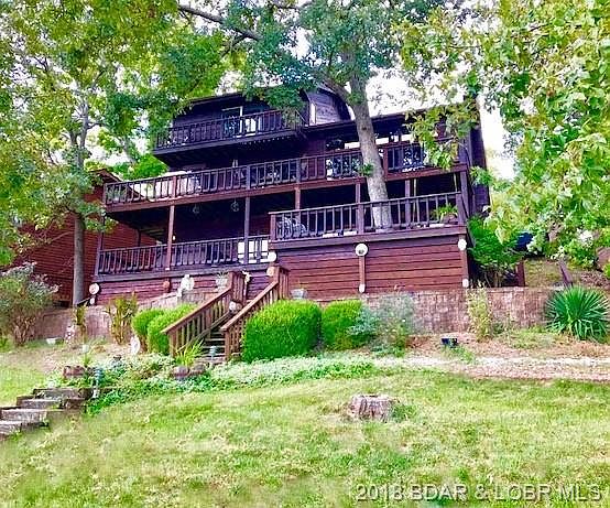 Everything a great lake house should be. LOCATION. LOCATION. LOCATION! Tucked into a cove in popular Linn Creek Cove with deep water and big, BIG views this house is a wow from the moment you walk into the front door. You will find huge floor to ceilings windows that frame long, spectacular, views. Glistening hardwood floors and soaring vaulted ceilings in a great room that compliment the open floor plan in a home that invites entertaining. Pull into your 2 car garage and walk into an attached laundry room/drop zone. Bedrooms on all three floors create a nice separation for guests or large family. All one level living on the main floor is a nice bonus! Large family room with a wet bar and cozy fireplace downstairs. Home is situated on a large waterfront lot, boasting 120 feet of lake frontage with an incredible lakeside patio, dock, and nice swim platform. Close to some of the lake's favorite restaurants only minutes from your dock, this house is an easy drive to town!