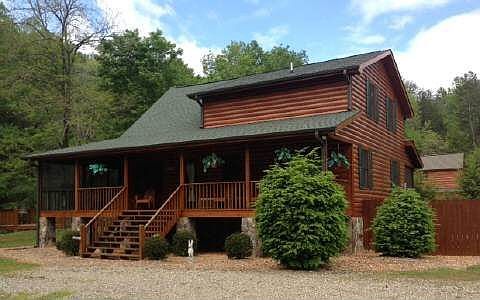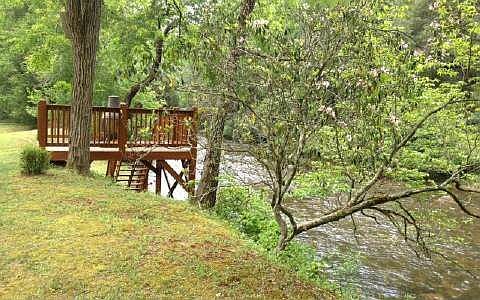 Toccoa Riverfront...off Fish Hatchery Rd.!! Fishing for a BARGAIN???? Price is REDUCED on this Toccoa Riverfront home that features Greatroom w/gas log FP, Hugh Master Suite w cathedral ceilings and private ba,, wrap around covered and screened porches, & open deck at the rivers edge. NEW heat & air unit 06/2012. Easy access just off paved Rd, level lot, and trout fishing at your door with 263 ft on Toccoa River. Upscale furnishings are nego. in sep. Bill Of Sale. A great investment property or year round home. Abundant wildlife include turkey, deer & USFS is less than a half mile away. Relax on the front porch and let the sounds of the River wash all your cares on downstream!!!