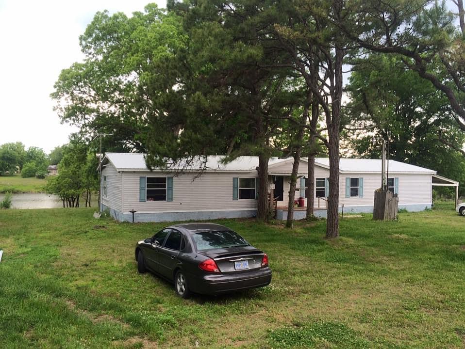 Lake Hudson home FOR SALE! Approximately 3 acres fenced lakefront property with mature pecan, apple, cherry, and pear trees. 3 bdrm/2 bath home, approx. 2,250 sq. feet. 16 years old. Extra large living room with custom floor-to-ceiling rock fireplace. Spacious master bdrm with parents' retreat/office and large walk-in closet. Garden tub in master bath. Screened-in back porch. Brand new metal roof. Newly installed septic system. Beautiful view of lake with a gentle slope. Storm cellar conveniently located under attached carport with side door entrance to home. 2 carports. Large 40x40 metal shop/garage building. Gentle slope to lake with 225 feet of waterfront. Good fishing/swimming area. Located between Pensacola & Adair on Rock Creek part of Lake Hudson. Adair school district. 1/4 mile from Hwy 28, blacktop road all the way. 10 minutes from I-44 Adair exit. 20 minutes to Pryor or Vinita. $89,500- Priced to sale! For more info, call Helen @ 918-915-0873 Need to sell fast!