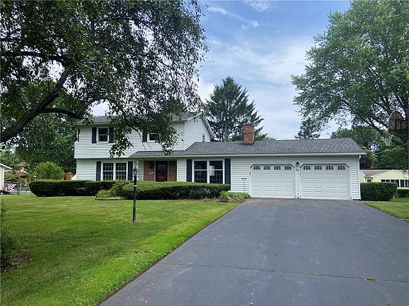 Here is your opportunity! Welcome to this well maintained and spacious 3-bedroom, 1.5 bath Greece colonial. Pride of ownership is reflected throughout by original owners. Located in a great location on a quiet neighborhood street, yet close to shopping, parks and expressways. Welcoming curb appeal with classic and desirable exterior colors. Upon entry, you will love the inviting charm and character of the roomy floor plan featuring hardwoods throughout. Updated eat-in kitchen with oak cabinets, neutral countertops and newer black appliances included. Adjoining Dining room/Living room combo with great natural light. Cozy Family room with a gas fireplace and access to the backyard patio. Upstairs, you will find 3 sizable bedrooms with large closets, and Hardwoods in every room. Highlights include, maintenance free siding, newer garage doors, solid mechanics- Hi-Eff Furnace & central A/C, newer Roof and H2O tank (’22). Partially Finished basement with Washer/Dryer included all add to the value of this great home. Situated on a generously sized wooded and private lot. Come put your own design and decorating touches on this wonderful home. Offers due by Sunday, July 16th at 6pm.