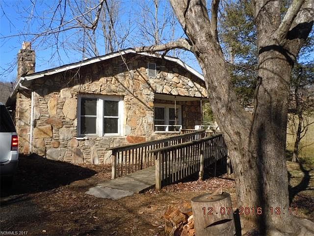 Welcome to this whimsical 1930's stone cottage. Extensively renovated with modern finishes while retaining the ornate character. Improvements include: updated electrical & plumbing, renovated interior, flooring, tankless water heater, Propane furnace & central A/C, metal roof & gutters, private well, smart thermostat, camera/security system, commercial dehumidifier and MORE. Level yard, flowing stream, fenced yard and attractive landscaping enhance the outdoor space with room for play set, fire pit or garden. A charming covered front porch, detached double garage, patio, and versatile basement complete the package. An easy 20 minute commute to Asheville or Waynesville. Furniture available for purchase.