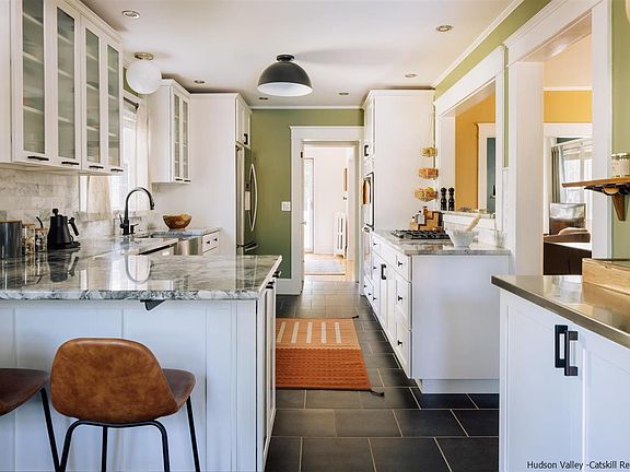 Enter 86 Roosevelt: A classic example of New Traditional Craftsman architecture with modernized floor plan, designer fixtures, and smart home features (split units, app controlled heat, Vivint alarm system). Meticulous maintenance and high end aesthetic design are prominent throughout. The inground saltwater pool is surrounded by hand-laid herringbone brickwork and a newly installed Hemlock perimeter fence. This 3 bedroom 2 full bath home exemplifies what today's home buyer seeks most: Space to live, create and work from home while providing outdoor space that yields room to entertain and relax. There is no home in Kingston that will surpass this level of care, beauty and maintenance. If you are seeking modern elegance, matched by years of historical tending, this is a prime specimen of Kingston's finest offerings. 86 Roosevelt is situated in a quiet and well manicured neighborhood near the Midtown Arts District and Uptown Stockade District. Welcoming you through a covered front porch and into the front foyer, you will be greeted by the awe of high ceilings, crown molding, hard wood flooring and a house that easily feels like home. The gourmet kitchen has it all: a breakfast bar, eat-in dining nook, a pass through to the formal dining room, upscale stainless appliances, soft-close cabinetry and high style. Newly appointed high end lighting, kitchen and bath fixtures add a tasteful and bold presence to each room. Create your home office in the den off of the living room, the well insulated/three season glass enclosed sunroom overlooking the pool or in one of 3 bedrooms. The one car garage can perhaps be converted into your updated poolhouse. The private driveway allows for further off street parking and a side door for basement or Kitchen access. The walk up attic yields additional storage and possibility. Architectural fans, don't miss the Hip-on-Gable roof (also known as a Jerkinhead) or at least save the word for scrabble on the back patio. Please request the showing sheet for all recent updates including new boiler, hot water heater and LG washer/dryer 2022.