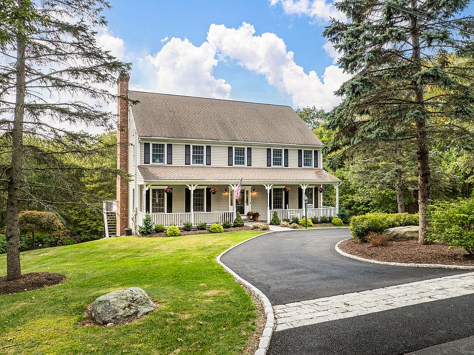 This is the one you've been waiting for! Glorious, perfectly remodeled 5 bedroom colonial that epitomizes refined elegance & expansive 4 level living. Breathtaking Round Lake and NYC skyline views from the back deck. Whimsical stone front porch. Located in a lovely neighborhood just moments to the NY border. Nearly an acre and a half of manicured grounds and gardens. Inside, the home features incredible room scale & flow. The high level of craftsmanship is evident throughout. Phenomenal formal dining room with moldings & custom woodwork. Spectacular chef's kitchen with center island, coffee bar, & top-of-the-line smart appliances. Stunning, light-filled open living room with stone fireplace, large eat-in area & sliders out to deck. Lovely sitting room & designated office - each with their own wood burning fireplace. Upstairs, there is an expansive primary bedroom suite with dual walk in closets & a newly renovated bath with soaking tub and radiant floors. Down the hall, there is a large en-suite guest bedroom, 2 additional bedrooms that share a J & J bath, & custom laundry room. The walk up third floor offers even more add'l living space, cedar closet, & storage. Downstairs, the fully finished lower level features a wood burning fireplace, powder room, walkout, & access to the stunning oversized 3 bay garage with swiss tracks and fully insulated garage doors - a car lover's dream! Minutes to downtown, this home is quintessential Ridgefield living at its best. Extensive list of upgrades attached to listing.