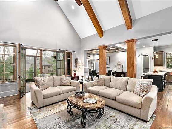 Luxury main level living and active lifestyle in a gated mountain community! Whether you are upsizing or downsizing; this beautiful mountain manor is perfectly sized for family living or entertaining to your heart's content! Custom built in the historically significant and durable pebble dash style of Asheville's own Biltmore Village, this home combines well-appointed architectural elements and charm into a spacious open floor plan that allows you to live and play in seamless beauty. From the light filled turret that shows Chestnut Mountain in all its four-season glory to the screened porch, gourmet kitchen and luxurious primary suite; you will relish every inch of your new home! Staying healthy is easy and enjoyable with over six miles of walking/hiking trails or working out at the state-of-the-art Wellness Center. Welcome to The Cliffs at Walnut Cove, where one membership opens up a world of activities and friends in seven communities in NC and SC.