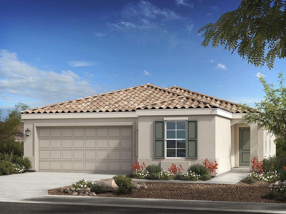 This single-story home features an open concept floor plan that includes 9-ft. ceilings and a large great room. You'll also find Emser® tile flooring throughout the great room, dining space and kitchen, and Shaw® carpeting in the bedrooms. The expansive kitchen offers 42-in. upper cabinets, granite countertops, a center island and Whirlpool® appliances. The private master suite at the back of the home includes an oversized closet, and the master bath boasts a full shower with glass enclosure, a dual-sink vanity, and a door at the water closet. Additional features include Sherwin-Williams® two tone paint, Moen® WaterSense® kitchen and bath fixtures, Generation Lighting fixtures and SmartKey® front door hardware. This ENERGY STAR® certified home also includes a tankless gas water heater and a Carrier® 14 SEER air conditioner with programmable Côr® thermostat. This community offers playgrounds and walking trails.