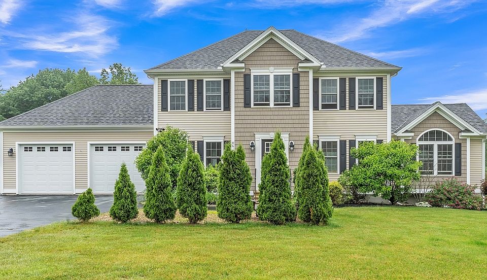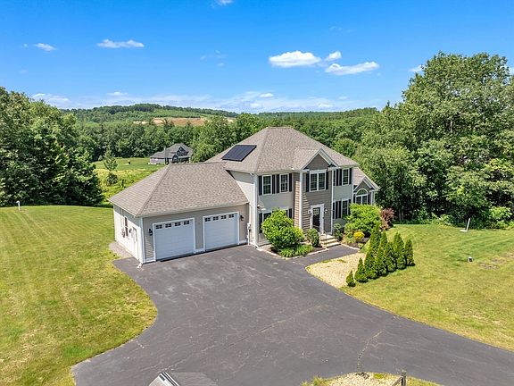 Welcome to this stunning young Colonial, set back from the road on over 4 acres of scenic land with scenic views at every turn. The impressive curb appeal immediately draws you in, setting the tone for everything this home has to offer. Inside, you’ll find a thoughtful floor plan featuring a main-floor primary suite, hardwood floors, and a bright, open-concept living space. The kitchen opens to the living room, where a propane fireplace with a marble surround creates the perfect spot to gather and unwind. A large walkout basement leaves the door open to finish adding a substantial additional living space. Step out to a spacious backyard and patio, ideal for entertaining or enjoying the peaceful natural surroundings. Rounding out the features are central air & an oversized 2-car garage—perfect for vehicles, storage, or weekend projects. The leased solar helps minimize monthly electric expenses while adding long-term energy savings. A true forever home to take pride in for years to come!