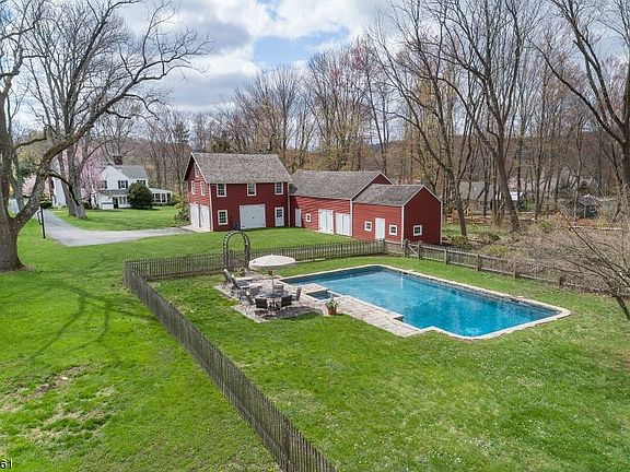 Situated on 3.5± level acres, this 19th Century Colonial has a commanding presence. Classic elegance, attention to detail, and fine features are evident throughout this residence. Offering high levels of sophistication, this historic gem glows of Old World charm while offering the sought-after amenities of today's lifestyles. The front door with leaded glass sidelights and transom above welcomes you to enter. Inside, natural light cascades into spacious rooms enhanced by deep moldings, gorgeous wood floors, and tall windows providing serene views. This elegant home offers exquisite entertaining areas as well as comfortable rooms for everyday enjoyment. The front-to-back foyer introduces the layout. The formal living room features a grand fireplace and molding details. The banquet-sized dining room has a fireplace, built-in cupboard, and French doors leading to the slate-floored screened porch. The den, with a wood-burning fireplace surrounded by expertly crafted woodwork and built-ins, also has access to the screened porch, creating the perfect flow for entertaining. Beauty and function come together perfectly in the classically updated kitchen. Sparkling white cabinets topped with granite, professional-grade appliances and a butler's pantry supplying extra storage and workspace are among the highlights. A desk area is an extra bonus. Nearby is the laundry room and the enclosed side porch accessing the yard. Upstairs, the second-floor landing reveals four bedrooms including the spacious primary suite with a fireplace, dressing room, and updated bath is a private retreat. Four additional bedrooms and two more baths provide personal space for the entire household. Not to be missed are the two home offices on the third floor. Complete with an in-ground Gunite pool, hot tub, stone patio, and a red post and beam barn, this remarkable property is a house you will want to call home.