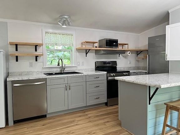 Attention to Details! Recently Renovated 2 Bedroom home with 2024 NEW Kitchen. Excellent oversized drawers for lots of storage on this "sit to" Island. All NEW Appliances including the Washer & Dryer. New flooring throughout and NEW full BATH. Owner added new screens for windows and most interior doors. Primary bedroom freshly painted can accommodate KING size bed with bedside tables. Recently serviced furnace all in good shape. Hot water heater new in 2023. Take advantage of this Updated and Fresh interior that offers a modern design that is Warm and Welcoming. Exterior Shed is 10'x 20' with a nice and dry interior for your storage needs. Easy Commute to both Manchester & Concord as well as Lake Horace public beach and boat launch. Open Houses Canceled.