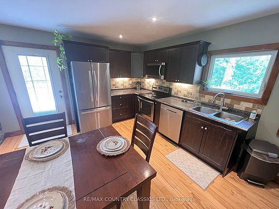 Just 600 yards from public waterfront access on Rice Lake, this 4-bedroom home offers lakeside living without waterfront taxes. The open-concept main floor features 2 bedrooms, a 4-pc bath and a stone fireplace in the combined living, dining and kitchen area, opening to a spacious back deck overlooking a private, tree-lined yard. The walkout basement adds 2 bedrooms, a 4-pc bath, laundry and family room. Outdoors, enjoy a landscaped yard with a large fire pit, treehouse, sheds and an enclosed sugar shack in the back forest--fully equipped to tap 50 maples, including evaporator and stainless steel pans, or used as a hobby studio/retreat. Additional highlights include a 24' x 24' attached garage, proximity to Peterborough, Millbrook, Port Hope, quick access to Highways 401, 407 and 115, and just 10 minutes to the Ganaraska Forest Trail system. Nearby attractions include golf courses, fishing, heritage sites and the Rolling Grape Vineyard. Recent updates: shingles (2012), septic (2019), hot water/pressure tank (2025). Oil heating cost averages $1600/year.