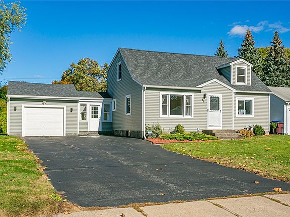 BEST VALUE IN GREECE! This charming Cape Cod with an attached one-car garage and large/flat almost fully fenced in yard is the one that you have been looking for! Sought after open concept with seamless connection between the kitchen, living and dining spaces. Two bedrooms and a full bath on each floor. Roomy walk-in closet in the primary bedroom (2nd floor). Workshop/rec space in full, DRY basement. Newer roof (2018), furnace (2019), Hot water (2015) and easy maintenance vinyl siding. Easy to show - you will not be disappointed! Delayed Showings: No showings until Thursday, 10/26/23 @ 10am. Delayed Negotiations: No negotiations until Monday, 10/30/23 @ 5pm.