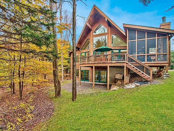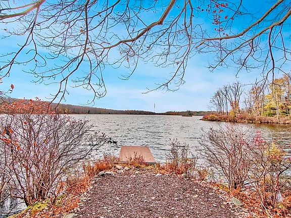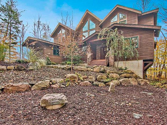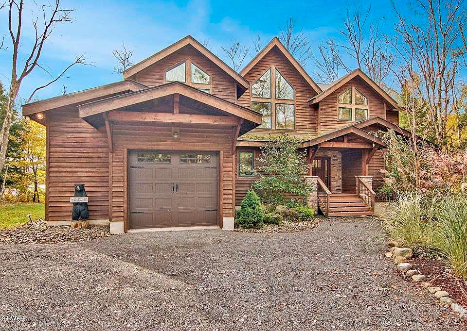 Magnificent Award-Winning Lakefront home on a 2.5 acre private peninsula in the Northern Poconos, less than an hour from the Delaware Water Gap. A long private driveway leads to this 5 bedroom, 3.5 bath completely secluded lake home custom-built in 2012 on a large wooded property in a 4 season amenity-filled community. Gorgeous Cedar Sided Adirondack style home situated perfectly, loaded with upgrades and elegance. GEOTHERMAL HEAT/CENTRAL A/C, Porcelanosa tile, custom cabinets/closets, impressive screened-in porch with beautiful stone fireplace, large deck, private dock, spacious wine cellar, child's play room, soaring cathedral ceilings with wooden beams and floor to ceiling stone fireplace, gorgeous hardwood floors in the kitchen and massive great room, amazing lake views!