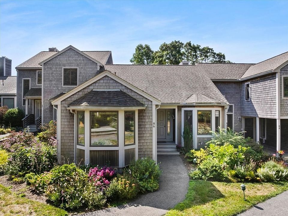 Welcome to 86 Ships Watch in the coveted Treetops at Quissett, where coastal sophistication meets effortless living. This 2Bed, 3Bath townhouse offers 2,298sqft of well-designed space enhanced by sweeping ocean views capturing the ferry to Martha’s Vineyard from both the living room & deck. Ideally located across from the clubhouse, pool & tennis courts, the setting allows for recreation, relaxation & extra parking as close as possible! The open layout blends comfort w/ function, featuring light-filled living & dining areas that flow seamlessly for gatherings or quiet retreats. The private front Bedroom, & Primary ensuite provide flexibility for family or guests, w/ full 1st floor living, laundry & scenic outlooks. The finished walkout lower level offers additional living space, home office, full Bath & cedar closet. Perfect as a year-round residence or summer escape, this home is set in a beautifully maintained community near Falmouth’s beaches, harbors & village amenities.