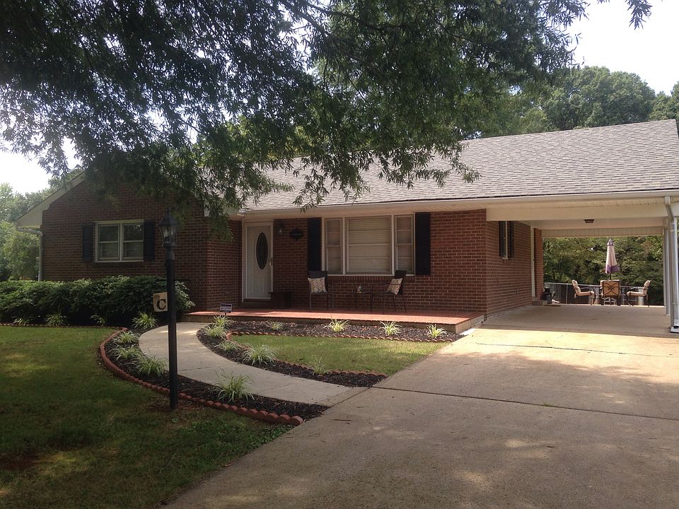 Well maintained and tastefully decorated home on level 1/2 Acre Lot in established neighborhood close to NC border, easy commute to Greensboro. Beautifully landscaped with an inviting front porch leads into a large living room with picture window. The kitchen has lots of cabinets and counter space in a country style with dining area. The formal Dining Room can be converted back to a spare Bedroom with closet along with 2 other Bedroom and Full Bath on the Main Level. Downstairs, the Walk-Out Basement includes a Family Room open to another Kitchen with Breakfast Bar and Dining Area with unfinished space for Laundry/Utility Room and lots of Storage. Beyond the carport is a Brand New Deck with step down to the level yard with a Storage Building and Dog Lot. Electric less than $200p/mo.