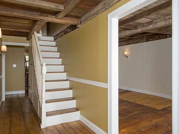 History buffs alert...1690 pre-Revolutionary war gem with rustic charm. You won't find another one like this. Current owner purchased this house as a labor of love ten years ago and has updated plumbing, electric, heating system (hydro air), roof, well, septic & leachfields, R30 insulation. Rare wideboard (21 inch) American chestnut and pine floors, 1917 clawfoot tub, exposed beams. Completely renovated; kitchen has stainless steel appliances. Two 500 gallon oil tanks in basement (none buried); rear of property has stream. Owner states approval in place for 200 SF addition plus barn. Home has excellent rental history (investors!); or think Air B&B. Walk to town for shopping, restaurants, coffee shops, etc