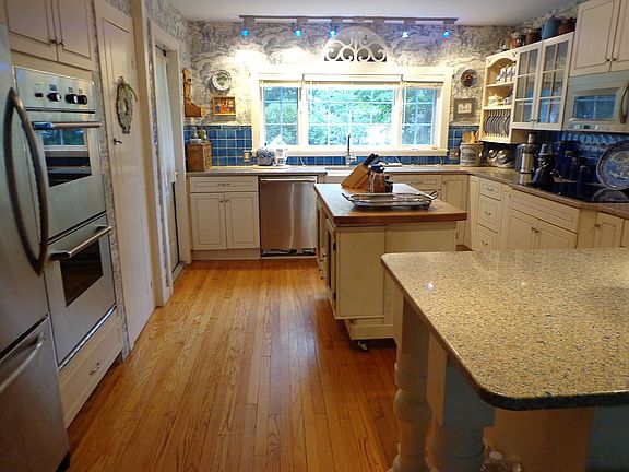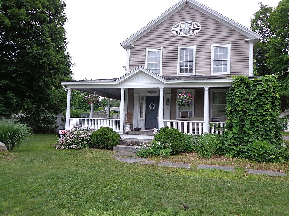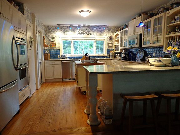 Large family home with 4 or 5 bedrooms and 2 and a half updated baths. Master suite is located on the first floor (tiled shower, walk in closet, cathedral ceiling, upstairs nook). Updated kitchen with open floor plan. Laundry, mudroom, office, and gas fireplace. Home has 2 car barn/garage/workshop and a pottery studio in a separate building. Large lot, room for a horse. Deck and pergola in the backyard. Potential for a home business with a center village location.