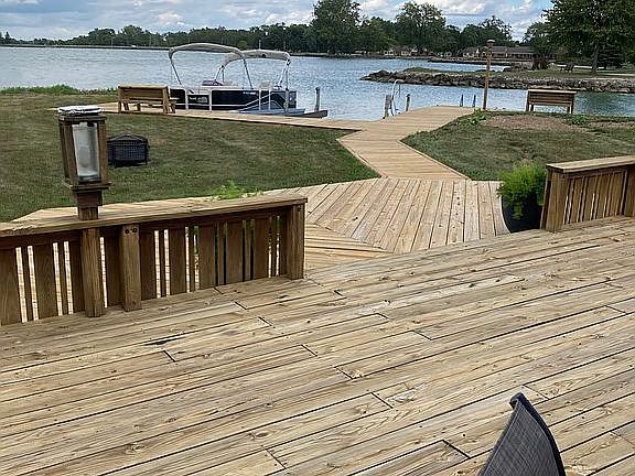 Southmoor Shores…Lakeview home…Dock has two boat slips, with one having a manual boat lift. Large deck, and yard (would easily accommodate a pool)