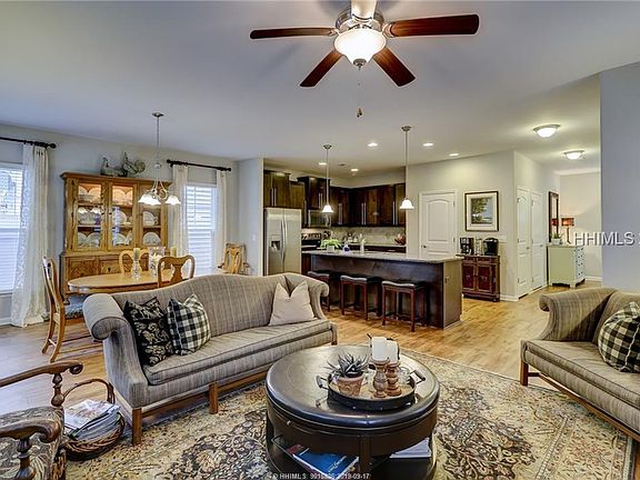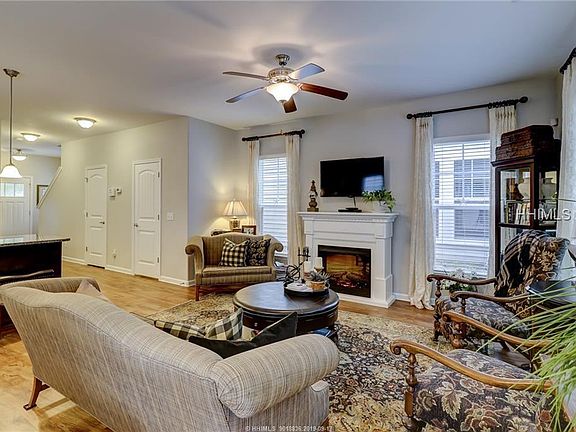 Pristine Kennebunk model (3BR, 2.5BA) cottage home at Palmetto Pointe Townes! Gourmet kitchen features granite tops, spacious island, stainless steel appliances, espresso cabinets and tile backsplash! Large owner's suite offers a walk-in shower, garden tub, walk-in closet and raised vanity! Enjoy the 9' ceilings and lovely LVP floors on the 1st floor, 2 spacious upstairs bedrooms with a guest bathroom, custom paint colors, attic spray foam insulation, storm panels for windows, 1-car garage and 2-car wide driveway! Community amenities feature a swimming pool and sidewalks with Pritchardville Elementary School just steps away!