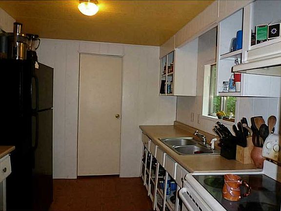 Affordable mobile on beautiful wooded lot. Large deck and detached garage. Needs TLC.