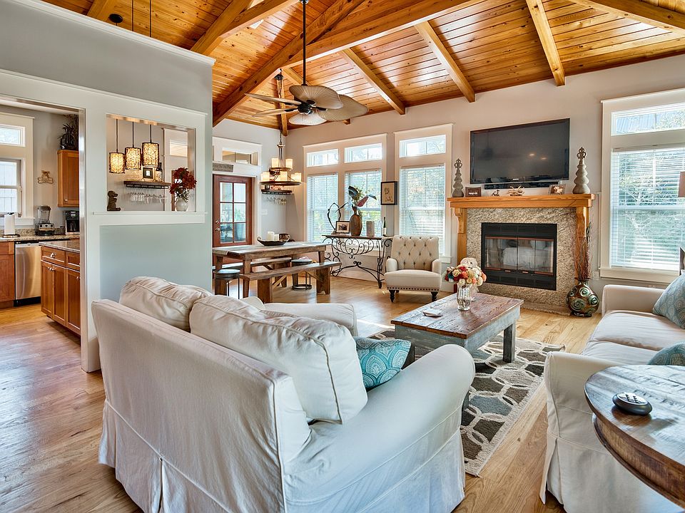 Summer Ridge is a private gated community with only 12 homes and a community pool. It’s located just minutes from the emerald green waters and white sandy beaches of the Gulf of Mexico. Lavish tropical landscaping throughout the neighborhood creates a feeling of separation and privacy that no other subdivision in South Walton can match. 86 South Summit and all homes in Summer Ridge are architecturally designed in a Coastal Cottage style with immense patio and porch square footage designed for outdoor relaxing or entertainment. Large 2 car garage features wood stained doors and a stone paved driveway. 86 Summit is the closest home to the always quiet community pool. Let 86 South Summit be your own quiet oasis by the sea.