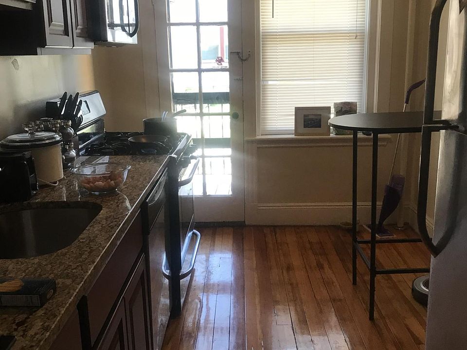 Available NOW. No broker fee!! Video tour available. Renovated 1 bedroom apartment. Kitchen with stainless steel appliances and granite countertops. Deck off kitchen area. Laundry in building, heat/hot water included, parking available for rent $150/month. First, last, $150 key deposit