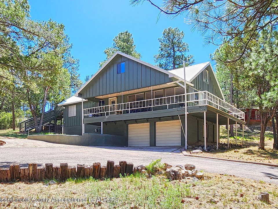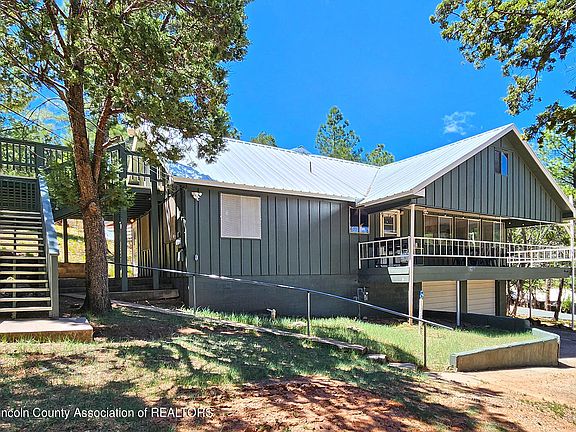 This 5 bedroom, 2 bath home has so many upgrades and would be great for a rental, vacation home or your primary. New Paint exterior and interior as well as new Kitchen counter, appliances, backsplash, painted cabinets, new sink and faucet hardware. New solid wood doors and wood baseboard trim throughout the whole house as well as new Pergo flooring. Both bathrooms are completed redone with walk in showers, new counters, new toilet. Upstairs bathroom has a new tub, toilet, new vanity, new tile on floor and shower surround as well. New light fixtures all over. Conveniently located to Ruidoso Downs or midtown Ruidoso close with a 2 car garage and great deck for you to enjoy. The lot next to it is included in the purchase price and backs up to the national forest. Partially furnished.