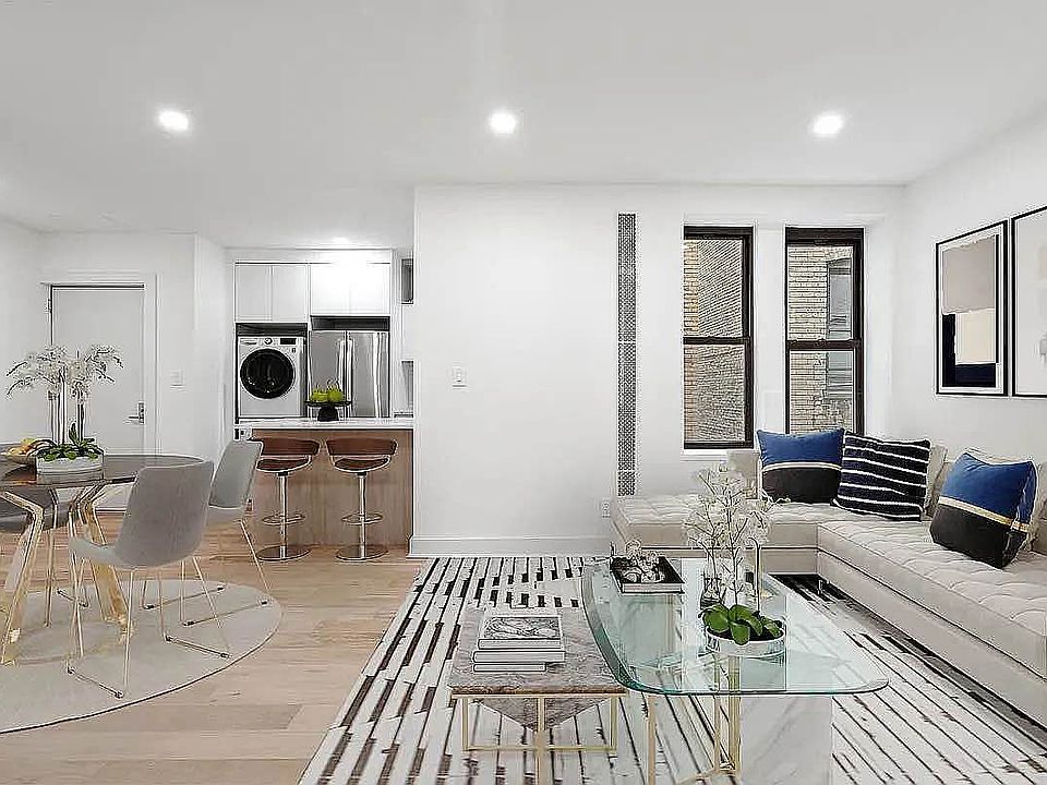 A gut-renovated pre-war co-op with modern fixtures and finishes, this bright 1-bedroom, 1-bathroom home offers stylish Fort George living seconds from Fort Tryon Park and The Met Cloisters. Tall sash windows let in incredible natural light. Beautiful hardwood floors and recessed lighting run throughout, and thru-wall A/C units complement traditional steam heating. An open living and dining area maximizes space and light. The windowed kitchen is adorned with sleek stone countertops, a white tile backsplash, a matte black faucet, custom cabinetry, and full-size stainless steel appliances including a dishwasher and microwave. The bedroom is spacious and bright with private closet space, and the bathroom features large format tiles, matte black fixtures, a custom wood veneer vanity, and a deep tub. A stacked in-unit washer/dryer is a convenient finishing touch. 86 Thayer Street is close to numerous restaurants and shops and is a few blocks from Highbridge Park, Isham Park, and historic Inwood Hill Park. Convenient dog runs and lush tree-lined walking, biking, and jogging paths are moments away, as are the Hudson River Greenway and numerous public athletic facilities, including tennis courts, running tracks, and soccer and baseball fields. Inwood Canoe Club and Hudson River Community Sailing School are also nearby, offering boating activities rarely available anywhere else in the city. The 1 and A subway lines offer simple commutes to Van Cortlandt Park and all of Manhattan.