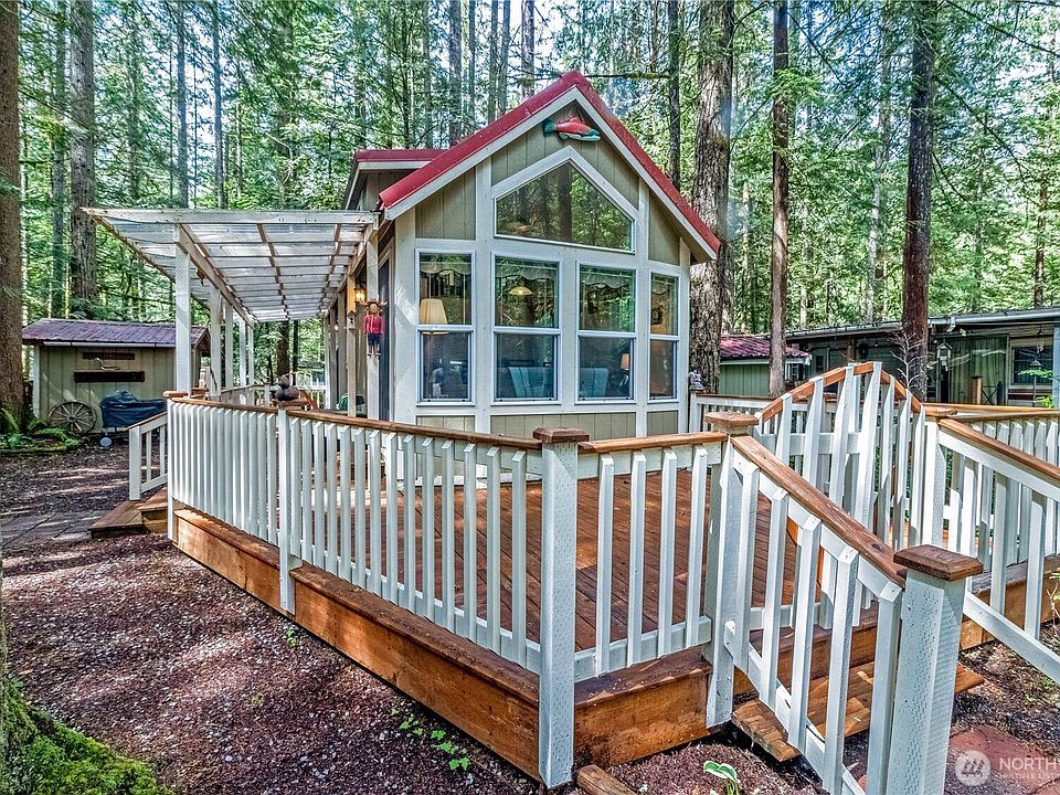 Tucked away on Sunset Circle in desirable Division 3 at The Glen, this beautifully maintained 2013 park model offers all the comforts of home in a peaceful, private setting. Includes full-size appliances, a walk-in shower & a cozy loft for added space or storage. Enjoy the fully fenced & covered deck—perfect for year-round relaxing—as well as a charming patio w/ a fire pit for gathering under the stars. A shed for extra storage & even a house for Fido. Whether you’re looking for a weekend escape or a seasonal retreat, this one checks all the boxes. Amenities include two pools, a hot tub, a tennis court, a library, a laundromat, two clubhouses, 24-hour security, gated entry & multiple play areas. Zoned 120 days/yr occupancy. No rentals.