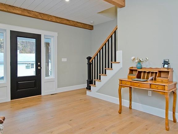 Still showing for backup offers. This newly constructed home has all modern conveniences in a natural setting. The open plan lets you easily move between the living room, dining area, kitchen, laundry room and first-floor bedroom/office. The living room is open to the kitchen and showcases the efficient gas fireplace. Your TV can be easily set up above the locally sourced wooden mantle as the shelving has built-in HDMI and power. The kitchen features maple soft-close drawers, ss appliances, cabinet lights, a farmhouse sink, quartz countertops, and an open-concept dining area with coffered ceilings. The laundry room has a built-in mudroom bench to store all your gear and opens to the backyard and covered patio attached to the garage. Upstairs you'll find a bonus living area, two bedrooms separated by the dual-sink attached bathroom, and the primary bedroom. The sliding barn door leads to a large bathroom including a walk-in closet. The full basement is open and ready for you to finish.