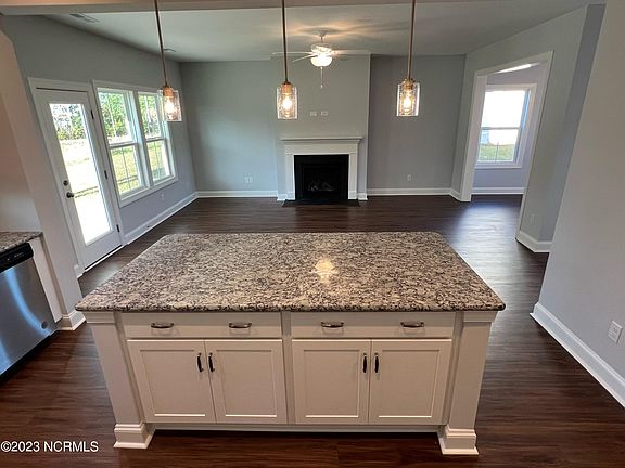 - Master Downstairs, Walk-in Closet(s), High Ceilings, Entrance Foyer, Kitchen Island, Ceiling Fan(s), Pantry, Walk-in Shower, Gas Log, Walk-In Closet(s)