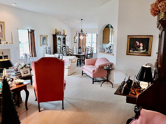 This sunny and bright Mill Brook home offers over 1800 square feet of spacious and comfortable first floor living! A long formal entryway welcomes you into this sunny and airy home. The living room with cathedral ceiling features a gas fireplace and is open to the cheerful dining room. The kitchen is equipped with maple cabinets and Corian countertops. Large glass doors provide the perfect exposure for flowers and plants and open to the manicured rear grounds. Three bedrooms in all - spacious primary suite has a cathedral ceiling, a walk-in closet plus second additional closet, and bath with herringbone tile and quartz countertops. The two other bedrooms share a bath with new cabinets and neutral tile. The laundry room is adjacent to the 2-car attached garage. Huge full basement runs the length of the house. Updates and Improvements: High efficiency (99%) Lennox furnace installed - 2022 Both bathrooms remodeled - 2019 New roof, exterior powerwash and trim paint - 2019 New hot water heater - 2016 New air conditioning unit - 2015
