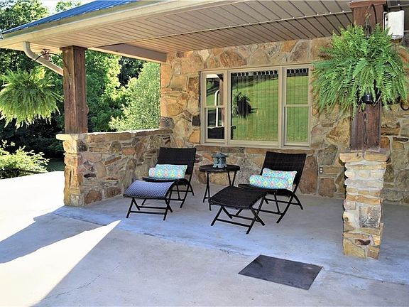 Great country property! 10+ acres in a country setting on both sides of the road offering cleared and wooded areas. This ranch home offers one-level-living and boasts wood and stone exterior, a metal roof and huge concrete patio. The kitchen offers wood cabinets, includes appliances and provides counter seating. Adjoining the kitchen is a cute dining area with table and chairs included. The living room features large windows offering natural light and a view of the surroundings. The bedrooms are a nice size and offer nice closet space. The main bath is very spacious with a 2 person, jet tub. The main floor laundry room includes the washer and dryer and also offers a 2nd full bath with shower. The lower level is unfinished and great for storage, workshop, exercise area etc. Outbuildings include a 2 car detached garage, 3 storage sheds near the garage, a barn and open storage shed across the road and a semi open machine shed up the hill. Ready to move in!