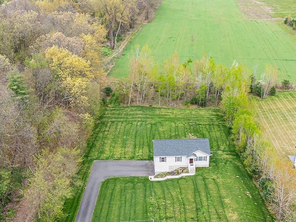 Looking for move in ready, with NOTHING to do? Look no further! This 8 year young ranch situated on an acre plus lot is looking for a new owner to come and LOVE IT! Open concept with living room, dining room and kitchen w/hickory cabinets is the perfect space...not to big, not to small! Cathedral ceilings, gleaming oak wood floors and SO MUCH light is what you will find when you walk through the door! Once you have checked out the living area continue down the hall to find two very generous bedrooms with ample closet space, the shared bath and a main bedroom suite with a private en~suite! Don't forget to head out the back door and sit on the 12X14 deck overlooking the private back yard and check out the lush, green grass! The lower level, with walk out, offers potential for more finished living space if you need it, currently used for the laundry area with a utility sink, tons of storage and the two car garage! Great location with easy access to all local amenities and highways!