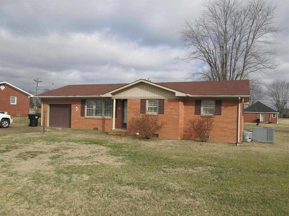 Brick home within city limits and ready for a new family. Carpet in the living room and one bedroom (there is hardwood under this carpet). 2 bedrooms with hardwood flooring. Kitchen & dining area with new vinyl flooring. Utility room is off the garage. Outbuilding and aggregate driveway.