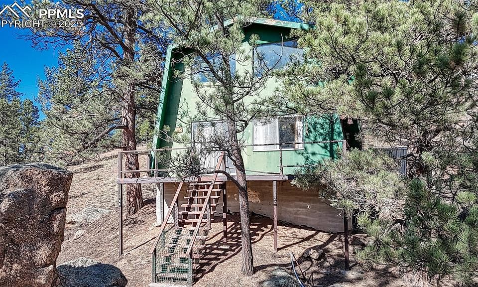 Step Back in Time with This Retro Mountain Cabin! Nestled on .85 acres, this cozy 2-bedroom, 1-bath cabin offers 864 sq ft of comfortable mountain living. Step back in time and enjoy the character of this retro cabin, designed for summer use and filled with nostalgic charm. In the afternoons, the southern exposure provides an abundance of natural light and solar warmth, creating a bright and inviting atmosphere. From the front deck, take in the clear view of Blue Mountain and the tranquil beauty of the surrounding landscape. Enjoy walking distance to two fishing lakes and Pike National Forest, perfect for hiking, fishing, and exploring the great outdoors. Whether you’re looking for a peaceful weekend getaway or a seasonal mountain retreat, this property captures the timeless spirit of Colorado mountain living.