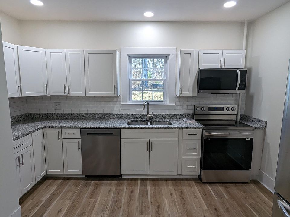 Fully updated 3br 1ba apartment in a great location in Falmouth. Come enjoy a comfortable, clean, and beautiful first floor apartment for your next home. New appliances, fresh paint, new luxury vinyl flooring - it feels new! Ample parking on site. Use all three bedrooms as bedrooms, or use two for living and one for a home office with a great view of a farm through the window. Windows are all new, and the apartment gets bathed in morning sunlight with a view of farmland out the window. Each room has spacious closets and there are beautiful built-ins in the living room. Enjoy a full-sized kitchen with new cabinets and granite countertops, dishwasher, and a window with a forest view out your kitchen sink window. Take care of your laundry needs right in your apartment with a laundry area (space for full sized stacked laundry machines, BYO). This is a non-smoking property in a lovely, quiet setting that is close to Falmouth's top-rated schools, shopping, local restaurants, and convenient to Portland and surrounding towns. Washer and dryer hookups in unit. All utilities are included! Tenants are responsible for electricity only. Cats and small dogs are allowed, but no larger dogs. No vaping or smoking of any kind on the property.