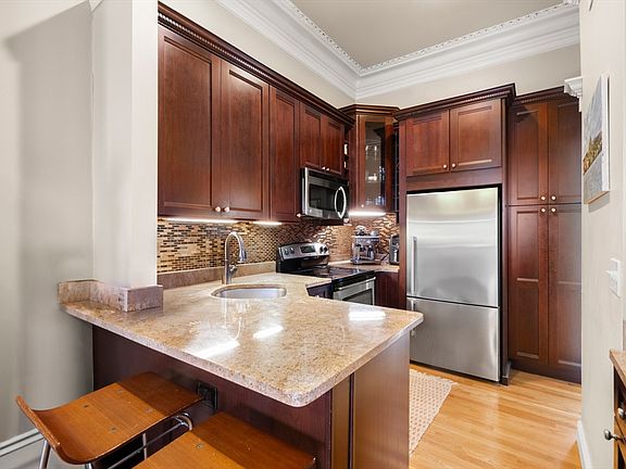 Everybody's favorite unit in a South End brownstone - the parlor-level floor thru. Only one flight from the sidewalk, this one bedroom home with a large private direct access deck & full parking space effortlessly combines classic charm with modern amenities. Featuring soaring ceilings, tall windows & original marble mantels, this home offers an open layout with a spacious front-facing living room with bow-front windows, original moldings & hardwood floors. Kitchen boasts dark cabinetry, sleek stainless steel appliances, counter seating & wine chiller. Bathroom includes glass-enclosed shower with a rain shower and custom vanity. The large full building width bedroom has two large windows, large double closet and built-ins. Additional features include in-unit laundry and central A/C. Pet-friendly and professionally managed association. The conveniences of Boston's premier neighborhoods are just moments from your door on this peaceful one way street. This is your chance at the South End.