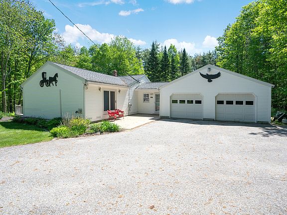 Set back from the road, this well maintained expanded ranch has a spacious living area for dining, entertaining and cooking. You'll enjoy the added counter space and cabinets in the kitchen, wood floors in living room and the multitude of windows throughout. 2 bedrooms and full bath provide one-level living. Oversized and heated 2 car garage is ideal for your workshop and has a half bath. Attached mudroom is ideal for the Maine seasons. The lower level offers 2 rooms (one heated) for crafts and family room along with a laundry room. Chose your cost effective heat sources of heat pump, oil boiler or pellet stove. Many perennial gardens and birds greet you and your guests in the level yard. Additional barn on-site for storage does need some repair. The zoning of this property should allow for an additional lot to be split for an accessory dwelling. Call today for your private showing!