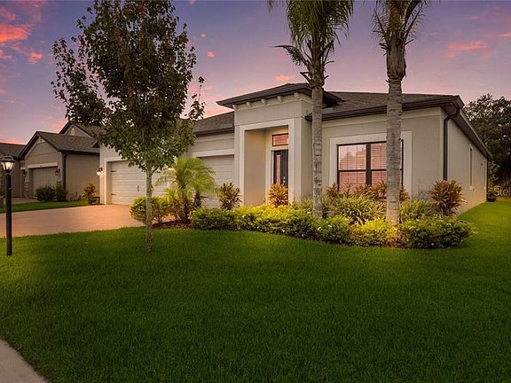 Once inside, the possibilities are endless with this open plan! At the entry foyer hall, there are two bedrooms that share a hall bath, and linen closet. At the center of the home, is the large open flow chef's style kitchen with an oversized kitchen island, banks of 42" cabinets with views of the living room, nook, and rear yard from every angle. The great room is large and Flexible enough to have formal and informal areas. Coupled with oversized windows, 8' pocket sliding doors, this area has plenty of natural light and maximize views to the rear of the home. The owner's suite features a large walk-in closet, dual sinks, linen closet, and deluxe bath with the oversized shower. The 4th bedroom is tucked away in the middle of the home and has access to the third bath of the home, making it great for multi-generational living or for extended stay guests. Don't miss the oversized extended lanai, a great addition to the home for showing off a premium view and outdoor living. Brookside Estates is a quiet neighborhood with NO CDD & LOW HOA. The builder is known for its quality craftsmanship, energy efficiency, & 15-year transferable structural warranty. Only minutes from I-75, it is accessible to all of the amenities that St.Petersburg, Lakewood Ranch, Tampa & Sarasota have to offer! This one-of-a-kind, a custom-designed home will not last, schedule a showing today!
