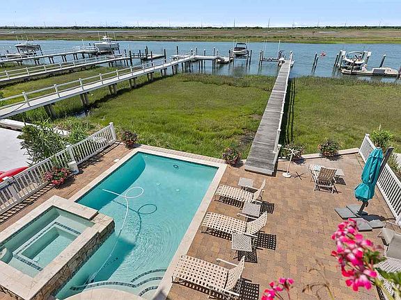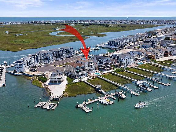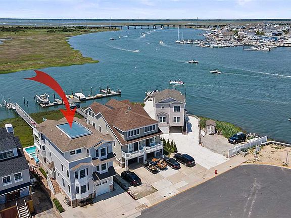 This spectacular Bayfront offering is unlike anything currently available in today's market. The spacious three level design offers five-bedroom suites and breathtaking southwest facing views of the bay, wetlands, and sunsets while nearly every other window provides open views through corridors to both the northwest and east! Expanded and updated in recent years, special features include: relaxing bayside pool and hot tub, massive sundeck (w/ convenient natural gas feed for grill) overlooking the pool, dock with 2 boat slips (1 lift), first floor bar with ice-maker, exercise room/office, custom bunks (sleeps 8) which the kids will love, irrigated planters and beds, generous under house storage, wide open second level great room, updated kitchen with subzero fridge, Bosch dishwasher, and wine cooler - perfect for large family gatherings, beautiful wood/tile flooring, gas fireplace, Sonos sound system throughout, third floor primary suite with jacuzzi tub, two separate closets, north and south facing decks, warming drawer, steam shower and office nook overlooking the bay and sunsets, a maintenance-free exterior, attached garage and more. Perfect location for the best water skiing, wake boarding, kayaking, stand-up boarding & sunsets in Avalon! Boaters will appreciate the near immediate access to back - bay fishing, Avalon Yacht Club and the Atlantic Ocean via Townsend's Inlet. Call today for your tour! Sold partially furnished with a closing in December '21. See associated documents for more.