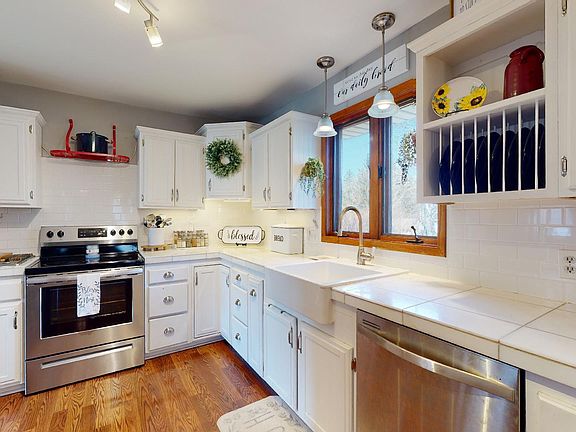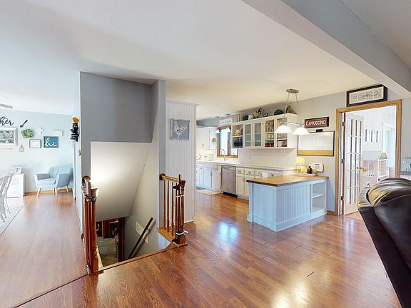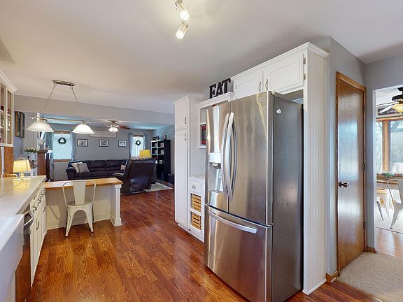 Spacious and cozy! This home is both. Enjoy fun weather events like fluffy falling snow and spring showers in the 320sqft sunroom - or curl up and read a book by the fireplace. Imagine decorating for the holidays with the tall ceiling in the sunroom. The kitchen/LR space provides the open feeling everyone likes with the beautifully updated kitchen with white cupboards, tile backsplash, and under counter lighting - all opening up to the living room so you can feel like your are in both places at the same time. It's hard to find a formal dining room these days, but this home has one. Master bedroom has it's own bath. And laundry is on the first floor! The basement was braced by Midwest Basements in 2017/2018 (lifetime warranty) and that giant space is ready and waiting to be finished and loved. Generously sized yard (over 1/3 acre). And all this in a quaint town where Little Wall Lake provides hours of summer fun - and, easy access to I-35,