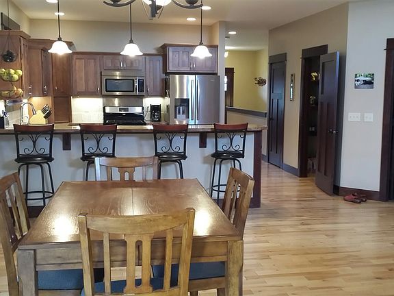 SUPER CLEAN! Beautiful Rand Toner custom built home with a great room floor plan that includes: vaulted ceilings, hardwood floors, and a gas fireplace with built-in shelving; well planned kitchen w/ under-cabinet lighting, stainless appliances, and a walk-in pantry, generous master suite w/ jetted tub, walk in tile shower, double sinks, and a walk in closet, spacious family room with a bar (refrigerator & microwave) The basement has egress windows=natural light! And a large great storage room!