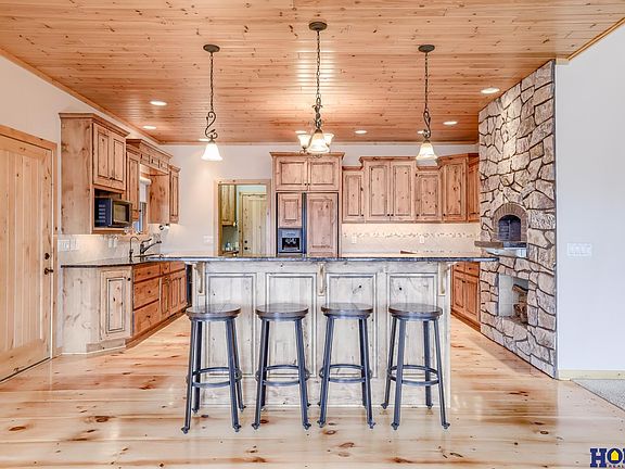 Phenomenal views await at Big Sandy! Featuring a well-thought out floor plan perfect for entertaining, this ranch features spacious great room, open kitchen & dining areas both with newly sanded & stained flooring, lots of granite counter space, SS appliances & pizza oven, YES a pizza oven imported from Italy! Grilling deck & sunroom off kitchen for added entertaining space. Main floor is also home to combo mudroom/laundry & pantry with full-size fridge & extra storage, spacious primary suite & 2 beds with shared jack & jill bath. Walkout basement with family room, 2nd kitchen with island seating, additional bed & bath PLUS large storage & storm shelter. BONUS: Additional bath accessible straight from the beach! Convenient 4th stall garage accessible from beach for TONS of storage of your water sports equipment! Experience stunning views thru-out including off incredible deck that stretches the entire length of home! This awesome lake property is ready for new owners & see it today!